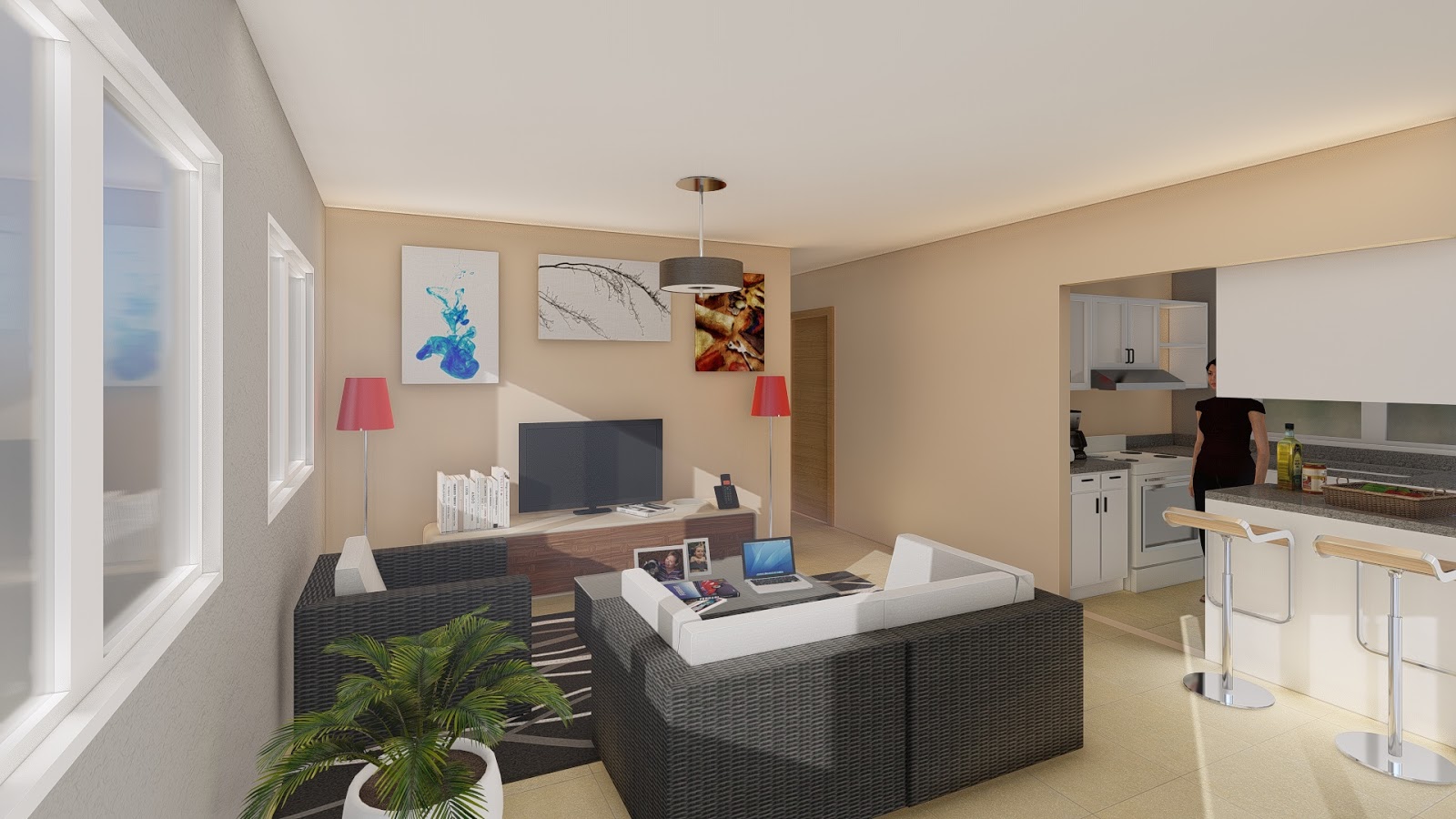 apartamento contará con tres habitaciones, dos baños, sala, comedor, cocina,